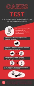 Several years after the Charter was enacted, the Supreme Court of Canada created a general framework for deciding whether government action that infringes a Charter right is justified. This is known as the Oakes test (named after the case in which it was created). Before using this test, a Charter right must be proven to have been infringed. If that is the case, then the Oakes test is used, with the government bearing the burden of proving that it has complied with the requirements of the test and that the infringement is therefore justified. The test consists of four distinct steps: