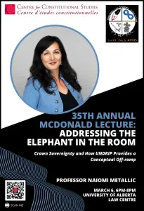 We're delighted to host Professor Naiomi Metallic as our 35th annual McDonald lecturer, which is co-sponsored by the Centre for Constitutional Studies and the Indigenous Law Students Association.