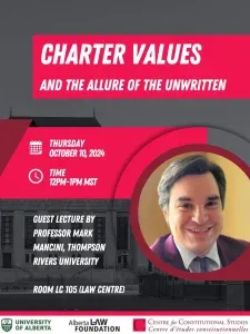 The Centre is excited to host a guest lecture by Professor Mark Mancini of Thompson Rivers University's Faculty of Law. The lecture will take place in person at the University of Alberta's Faculty of Law on Thursday, October 10th, 2024. It will also be livestreamed via Zoom (see below for a Zoom registration link).